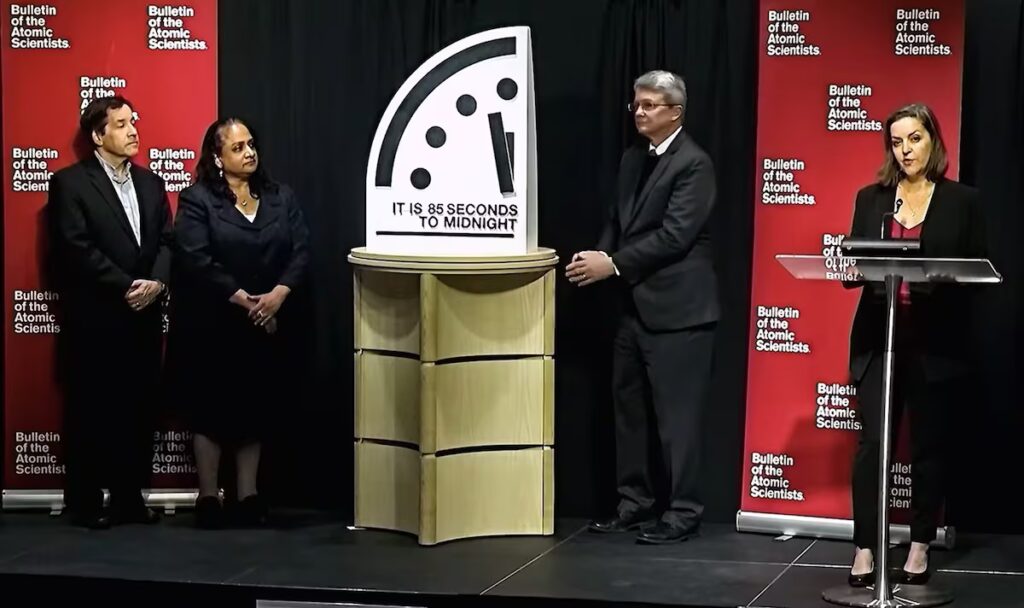 La humanidad se aproximan a un punto crítico, principalmente debido a la administración del presidente de Estados Unidos, Donald Trump. Este ha sido un líder prominente del negacionismo respecto al cambio climático, promotor de energías nucleares obsoletas y derivadas del petróleo, y catalizador de nuevos conflictos, como la intervención militar en Venezuela y las tensiones con Groenlandia e Irán. Estos acontecimientos se suman a la crisis en Gaza y la guerra en Ucrania, entre otros conflictos globales. En este contexto, el Boletín de Científicos Atómicos ha ajustado, por ende, el simbólico Reloj del Apocalipsis (Doomsday Clock) a solo 85 segundos de la medianoche, la cifra más baja en la historia de este indicador. Este ajuste refleja la ineficacia de los líderes políticos para abordar problemas armamentísticos, biológicos, ecológicos y los riesgos asociados con la inteligencia artificial, como la proliferación de desinformación.