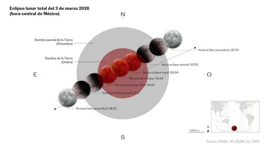 Eclipse lunar del 3 de marzo de 2026: guía para verlo en México