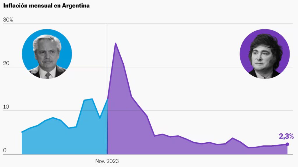 La estrategia de Milei ha logrado que la inflación se mantenga cerca del 2% mensual, aunque a costa de un significativo ajuste en el gasto público, que incluyó la paralización de obras, despidos y la congelación de sueldos.
